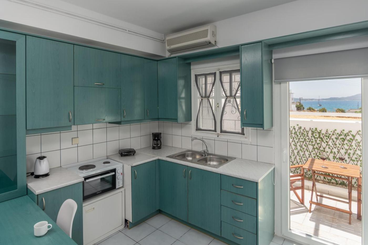 One-Bedroom Apartment. Featuring a private entrance, this air-conditioned apartment is comprised of a kitchen, 1 bedroom and 1 bathroom with a shower and a hairdryer. Guests can make meals in the kitchen that comes with a stovetop, a refrigerator, kitchenware and an oven. Boasting a terrace with sea views, this apartment also offers soundproof walls and a flat-screen TV. The unit offers 1 bed.