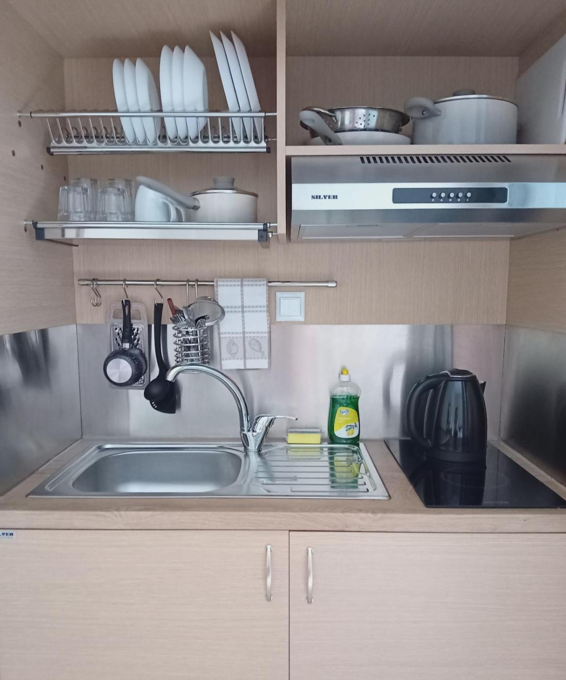 Studio with Balcony. In the well-fitted kitchenette, guests will find a stovetop, a refrigerator, kitchenware and an electric kettle. The studio features air conditioning, a private entrance, a balcony with mountain views as well as a private bathroom boasting a shower. The unit has 3 beds. ;