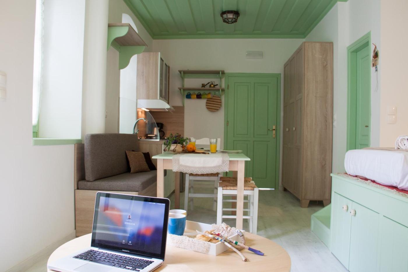 One-Bedroom Apartment-Helios. The air-conditioned apartment has 1 bedroom and 1 bathroom with a walk-in shower and a hairdryer. Meals can be prepared in the well-fitted kitchen, which features a stovetop, a refrigerator, kitchenware and an oven. A seating area with a flat-screen TV, a tea and coffee maker and a patio are available in this apartment. The unit has 2 beds. ;