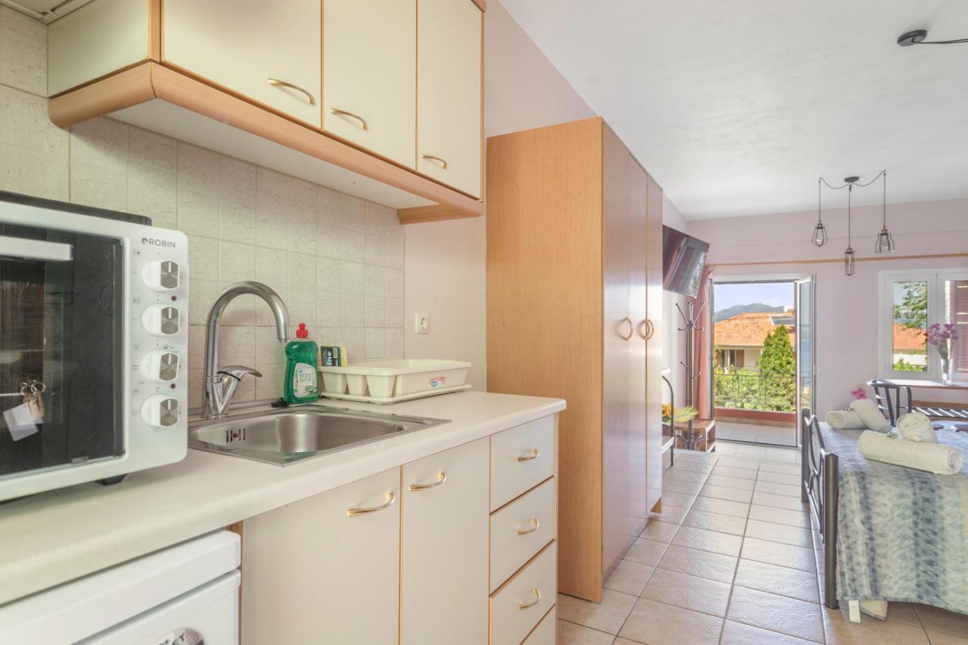 Studio with Terrace. In the fully equipped kitchen, guests will find kitchenware, an oven, a toaster and an electric kettle. This air-conditioned studio is comprised of a TV with streaming services, a private bathroom as well as a balcony with sea views. The unit has 2 beds. ;