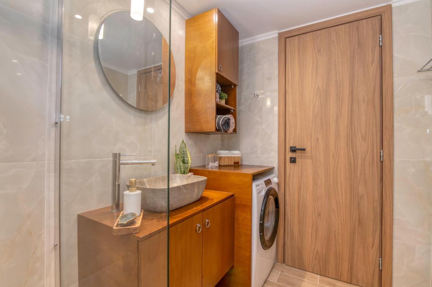 Two-Bedroom House. Boasting a private entrance, this air-conditioned holiday home includes 1 living room, 2 separate bedrooms and 1 bathroom with a walk-in shower and a bidet. In the kitchen, guests will find a stovetop, a refrigerator, a dishwasher and kitchenware. This holiday home has a washing machine, soundproof walls, a flat-screen TV with streaming services and a terrace. The unit has 4 beds.