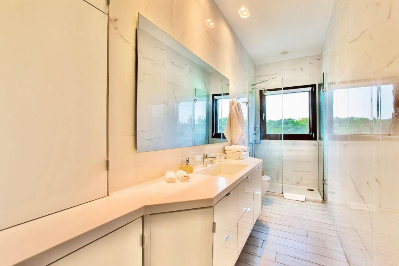 The villa with a terrace and mountain views has 3 bedrooms, a living room, a flat-screen TV, an equipped kitchen with a dishwasher and an oven, and 2 bathrooms with a walk-in shower. A private entrance leads gueststhe villa,they can enjoy some wine or champagne and fruits. The property has an outdoor dining area.