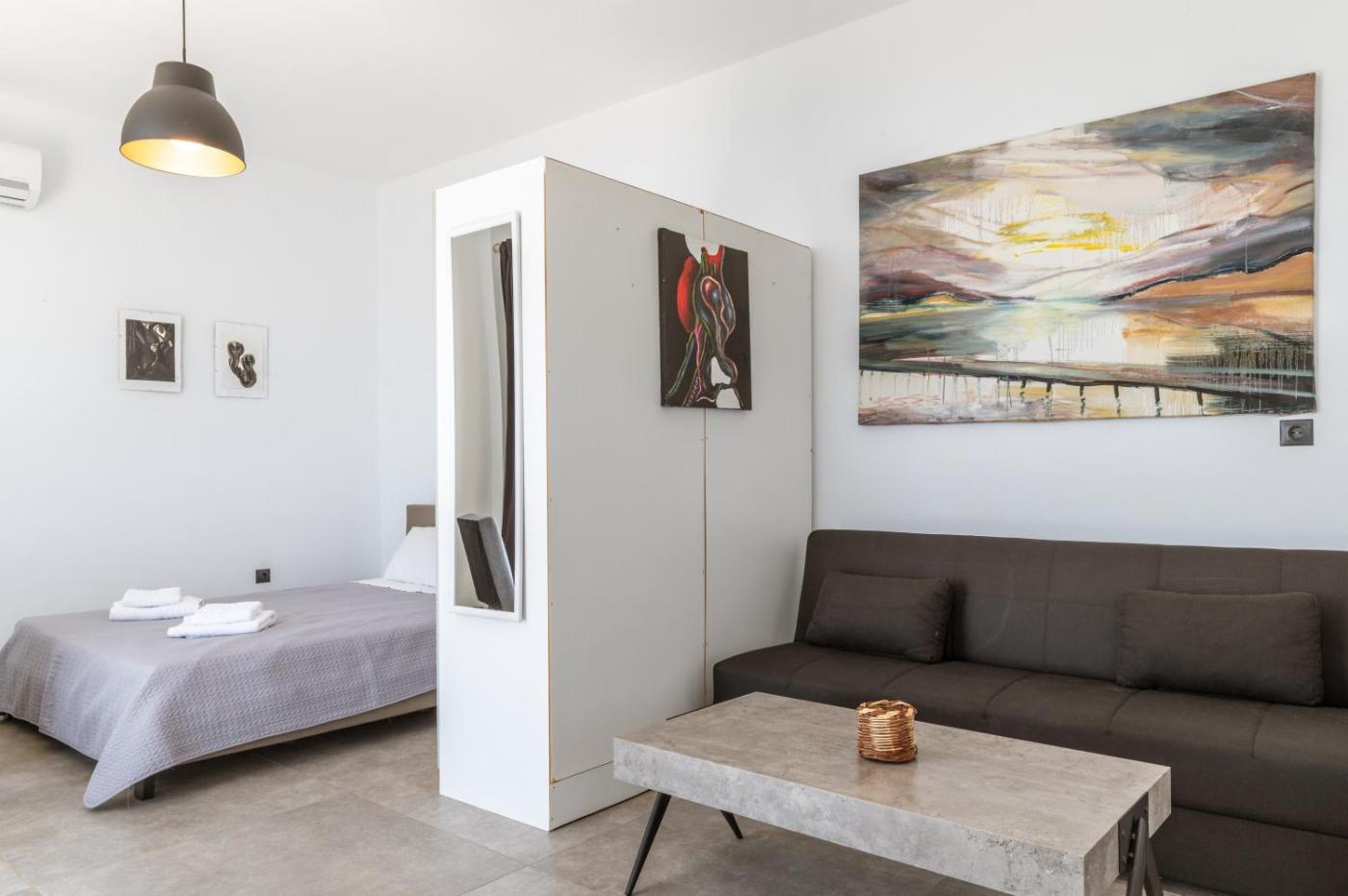 Studio with Sofa Bed. The studios kitchen, which features a refrigerator and kitchenware, is available for cooking and storing food. This studio is air-conditioned and has a private bathroom, an electric kettle and a balcony. The unit has 2 beds.
