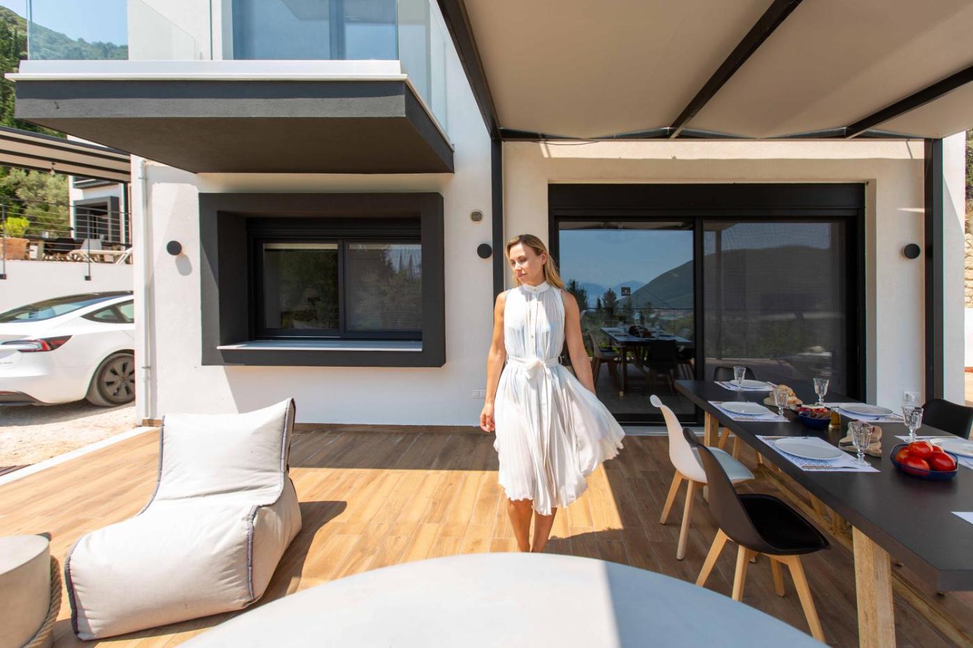 Two-Bedroom House. Boasting a private entrance, this air-conditioned holiday home comes with 1 living room, 2 separate bedrooms and 2 bathrooms with a shower and a hairdryer. Guests can make meals in the kitchen that features a stovetop, a refrigerator, a dishwasher and kitchenware. The unit has a washing machine, sea views, a terrace and winechampagne is available for guests. The unit has 4 beds. ;